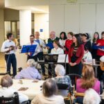 Členové sboru Kafky z náplafky secvičili koledy, kuchyně domova podávala voňavý štrůdl a výborný punč. (Tak dobrý punč jsme na Klamovce ještě neměli! Díky, šéfkuchaři!) Jako poděkování byly na závěr Kafkám rozdány malé dárečky, které klienti sami vytvořili v keramické dílně.